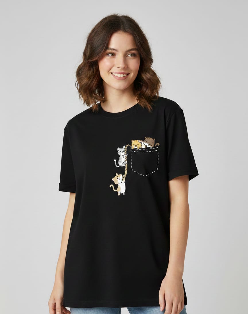 Womens Premium Contemporary T-Shirt – Cotton Pocket Cat